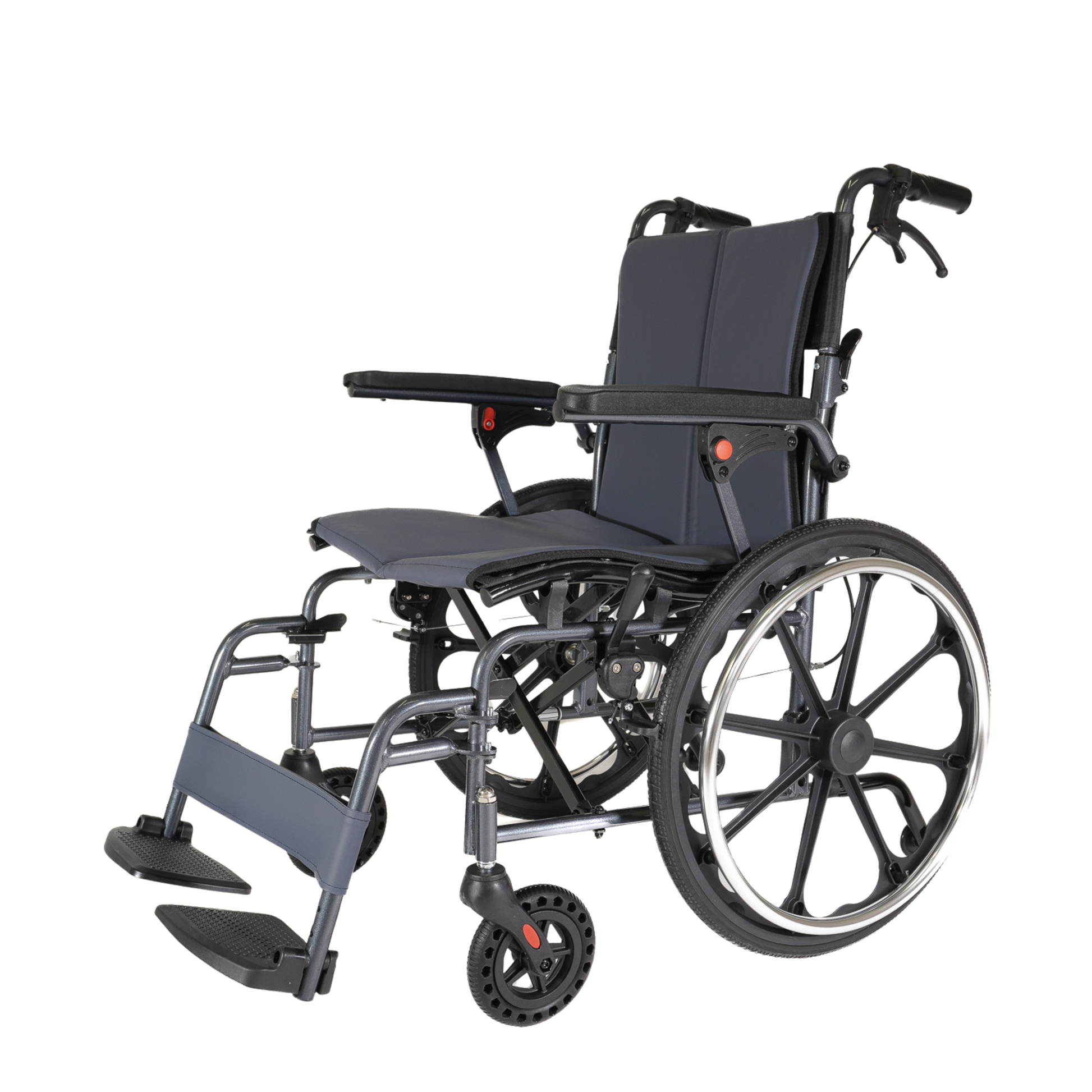 - Swing-Away Footrests – Makes transfers easier and improves accessibility in tight spaces.