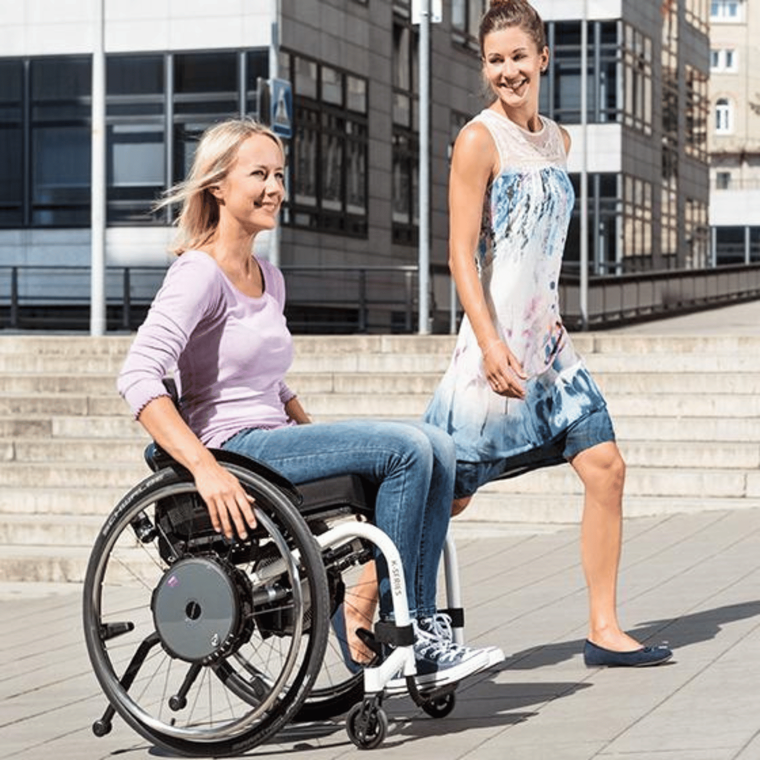 The concept of e-motion is to provide a simple solution and provide power assistance for your everyday life. You can combine the e-motion drive wheels with almost any wheelchair using two discrete adapters. While moving, sensors built into the push-rims measure your drive movement and provide you with the desired motor power. This allows you to move, steer and brake your wheelchair with very little effort. Each e-motion drive wheel has a weight of only 7.8 kg making it one of the lightest active add-on drives on the market.