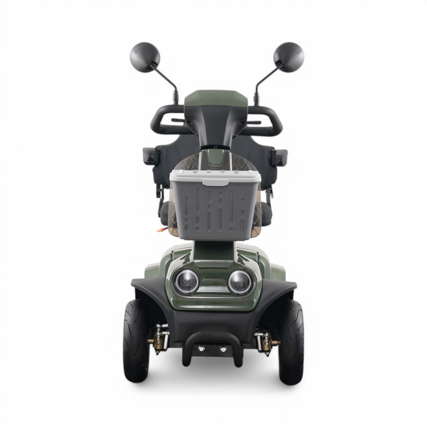 The Lander Mobility Scooter is a Class 3 road-legal scooter available in 8mph, 6mph, and 4mph configurations, designed to offer a practical mix of comfort, control, and everyday usability with a more modern, sporty look. Its all-round coil sprung suspension system helps provide a smooth and stable ride across a range of surfaces, while large air tyres improve grip and overall comfort. The wrap-around handlebars are designed for easy, controlled steering, and a clear digital display keeps key information visible during use. A full LED lighting pack improves visibility in different conditions, supporting safer travel throughout the day. Comfort is supported by a fully adjustable seat and backrest, allowing users to find a suitable seating position for longer journeys. For everyday convenience, the Lander includes a large all-weather shopping basket, front fender for added protection, cup holder, USB charging port, and two large wing mirrors for improved awareness. Supplied with a FREE rain cover, the Lander is built for practical, day-to-day use in a variety of conditions.