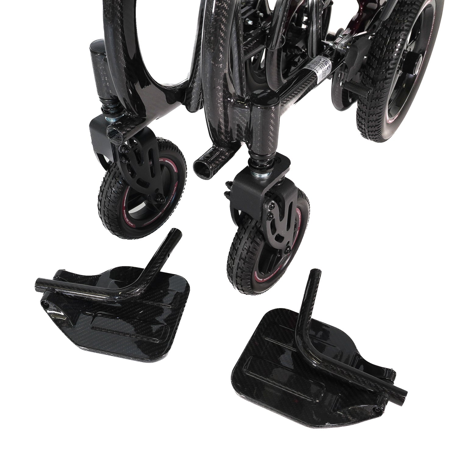 - Front metal caster wheels with suspension-style forks – Improved ride comfort, reduced vibration, and smoother control